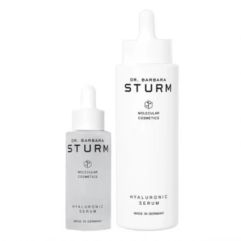 Dr. Barbara Sturms Lieblings-Serum, das HYALURONIC SERUM in der bequemen Pipettenflasche. Es steckt voller hochkonzentrierter lang- und kurzkettiger Hyaluronmoleküle, die intensive Feuchtigkeit spenden. Das Serum wirkt als Super-Booster gegen Trockenheitsfältchen und Hautunebenheiten. Unmittelbar nach der Anwendung tritt der Effekt ein: fühlbar gestraffte, tiefendurchfeuchtete Haut lässt Sie erholt und strahlend wirken. Durch die praktische Handhabung in der leicht zu dosierenden Pipettenflasche ist das Serum perfekt für jeden Tag, als Kur oder auf Reisen. Ob zur Anwendung nach einem Sonnenbad, einem anstrengenden Flug, Heizungsluft oder einfach als Erfrischung vor einem Abend unterwegs. Die kurzkettigen Moleküle können tiefer in die Haut eindringen, füllen die Feuchtigkeitsdepots so nachhaltig auf und wirken gegen die Entstehung von Trockenheitsfältchen. Das langkettige Hyaluron spendet sofort intensive Feuchtigkeit auf der Hautoberfläche und schenkt der Haut den erfrischenden Sofort-Effekt. Purslane und Helmkraut wirken antientzündlich, schützen Ihre Haut und aktivieren die körpereigene Telomerase.