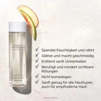 Basiert auf Wissenschaft. Mit Nährstoffen der Natur. Die White Tea Skin Solutions Moisture Infusing Bi-Phase Toning Lotion, unterstützt durch EGCG*, ist eine beruhigende, alkoholfreie Lotion, die verlorene Feuchtigkeit wieder auffüllt, die Haut glättet und strafft. Die Lotion enthält eine optimierte Mischung aus Wassermelonen-, Linsenfrucht- und Apfelextrakten, pflegt und reinigt die Haut schonend. Sie nährt und reinigt die Haut und sorgt für eine sichtbare Verbesserung. Für ein gesundes, strahlendes Aussehen in nur 7 Tagen. Sanft genug für alle Hauttypen, auch für empfindliche Haut**. Vegan. *Epigallocatechin-Gallat-Glucosid, ein aktives Molekül des Weißen Tees. **Selbstwahrnehmung
