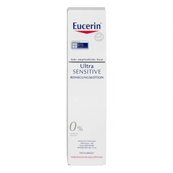 Die Eucerin UltraSENSITIVE Reinigungslotion reinigt schonend sehr empfindliche Haut, darunter auch zu Rötungen/Rosazea/Couperose neigende Haut. Sie ist mit einer begrenzten Anzahl an Inhaltsstoffen entwickelt, um Unverträglichkeiten und allergische Reaktionen möglichst zu vermeiden. Die Lotion enthält keine Tenside und ist sehr mild, trotzdem wird auch Make-up restlos entfernt. Eucerin UltraSENSITIVE Reinigungslotion enthält SymSitive, einen innovativen Inhaltsstoff, der speziell für überempfindliche Haut entwickelt wurde. Er entfaltet seine regulierende Wirkung am Ursprung der Irritation und beruhigt die Haut sofort.