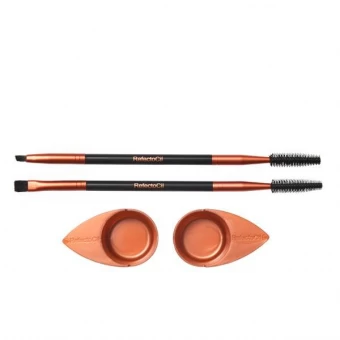 Das Browista Toolkit bietet Lash & Brow Styling Experten die idealen Tools für schnelles, elegantes Arbeiten. Das Kit enthält 2 elegante Kombipinsel mit jeweils einem innovativen Gummi-Spiralbürstchen sowie rosegoldenen Manschetten. Die beiden Kombipinsel decken Expertenbedürfnisse ideal ab: mir dem Spoolie lassen sich Brauen und Wimpern vor, während oder nach der Anwendung durchbürsten, der breite Pinsel eignet sich ideal um die Wimpern einzudecken, mit dem dünnen, abgeschrägten ist präzise Detailarbeit möglich.