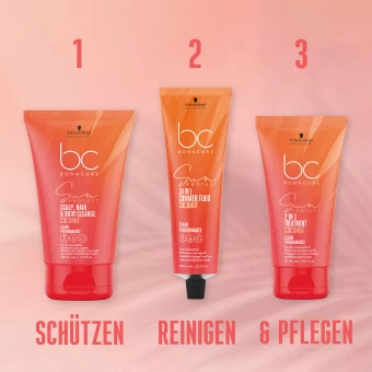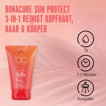 Eine vegane 3-in-1 Reinigung mit kaltgepresstem Kokosnussöl für sonnengetresstes Haar. Die sulfatfreie Formulierung* des 3-in-1 Scalp, Hair & Body Cleanse entfernt sanft Rückstände von Sonnenprodukten, Salz- & Chlorwasser für erfrischende Reinigung von Kopfhaut und Haut und Pflege vom Haar.